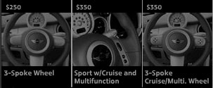 It looks like miniusa.com has now been updated to show the new optional 3-Spoke Steering Wheel that will be available on week 49 builds and on. The good news is to those who aren't fond of the new design it appears to be completely optional and the 2-spoke design remains as the default. However looking at the pricing I can't help but wonder why one would pay for the premium package (which comes with the standard 2-spoke MFSW) and then have to pay another $350 to get the 3-spoke multi-function wheel.